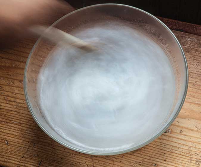To mix up a watery solution – what I call “soap soup” – boil four cups of water and pour that into one cup of soap flakes. Stir vigorously. The result looks like bathwater after a long soak. Don’t throw it out in frustration (like I did the first time I made it).