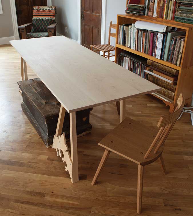 “A scrubbed finish is not restricted to pine, and I have used it for dining and kitchen tables and sideboards in oak, chestnut, pine, cedar and also sycamore. In the case of the latter, if an occasional wash with household bleach is substituted for the detergent, a beautifully white spotless surface will result.