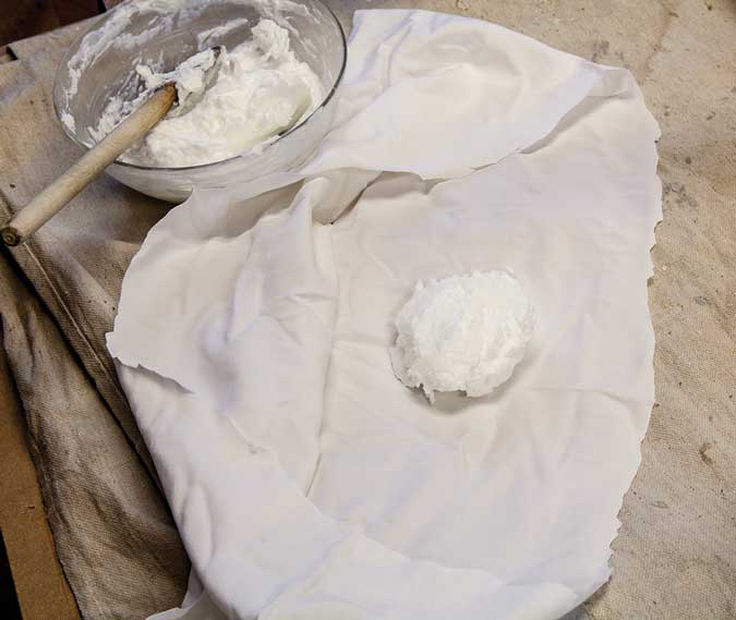 The whole ball of soap. To apply the wax-like mixture, spoon the soap into a rag and wrap it around the ball to create something similar to a “rubber” when French polishing.
