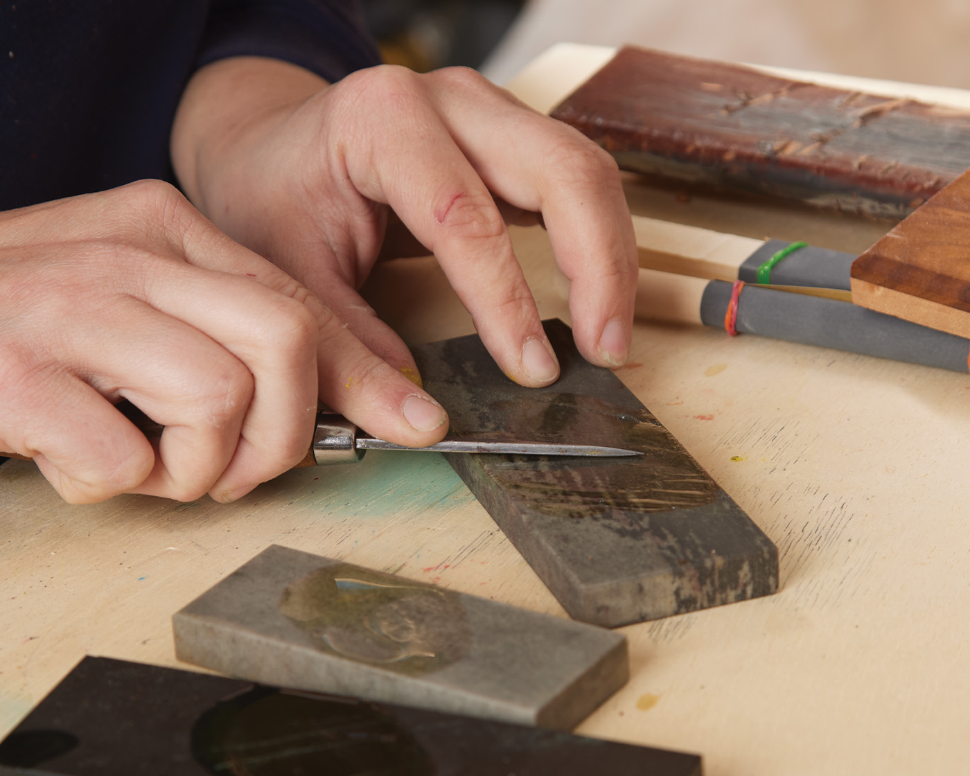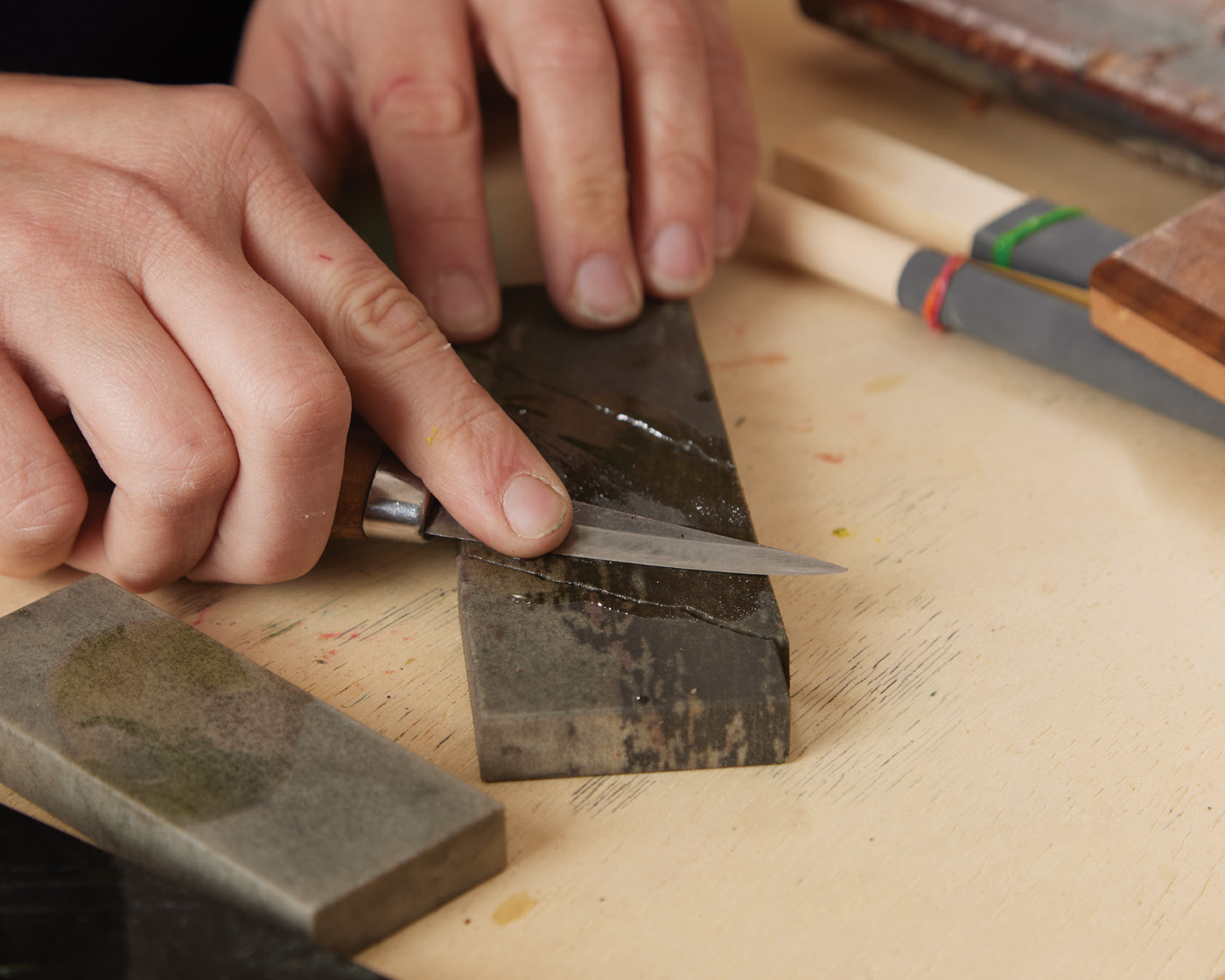 As you carve with your knives, come in and strop your edges occasionally. This will keep your edge crisp and lessen the amount of sharpening you have to do to your tool.