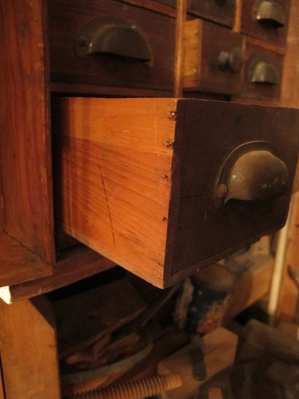 I keep all my nails in a plastic tackle box, which is perhaps the ugliest thing in my workshop and is something I intend to fix this year by building a traditional nail cabinet. These wall-hanging cabinets look like a lot of work because they have lots of drawers, but they are easy to build – thanks to nails.