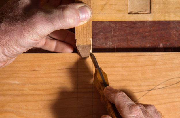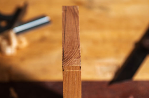 With a knife, deepen the shoulder line that you marked with your cutting gauge.