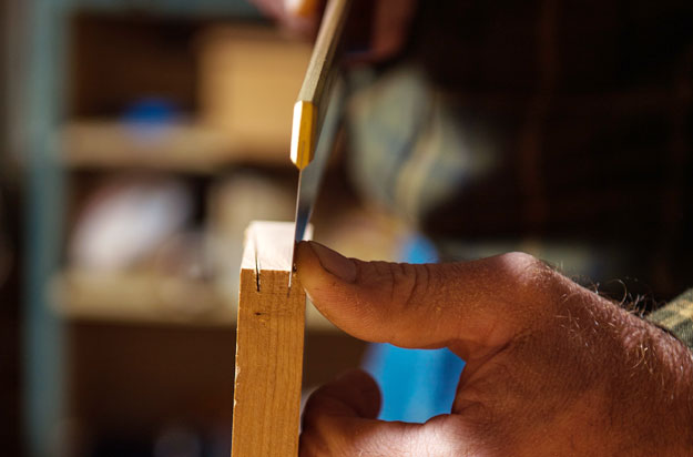 Once the joint is seated, it is extremely tight and often requires no glue. Hand-cutting this joint is easier and quicker than the lengthy process of setting up a jig and machine.