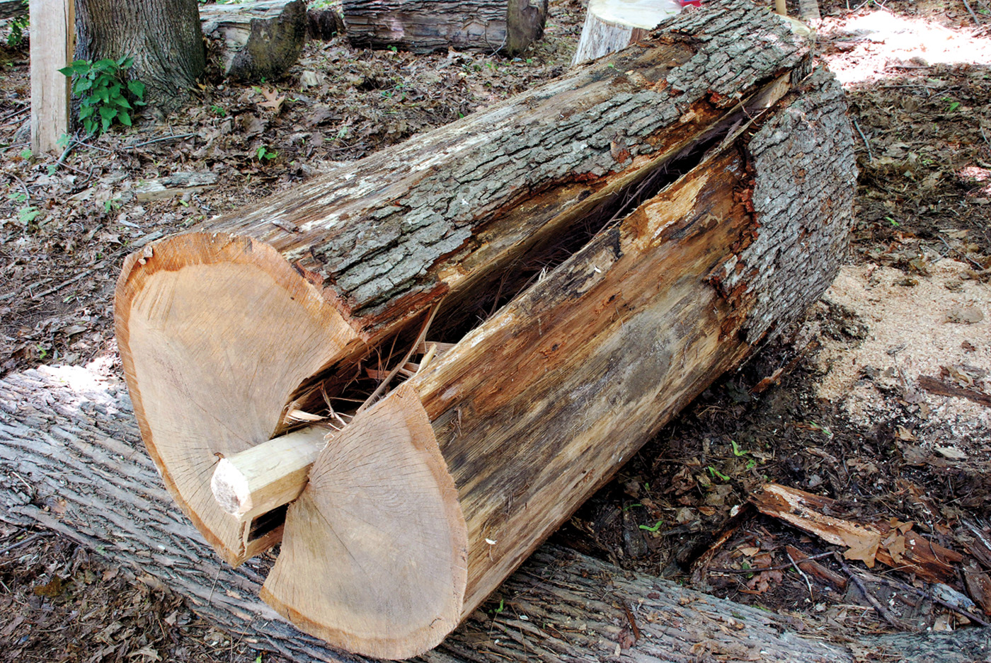 Search for perfection. A dead-straight and perfectly round log, free of branches, will give you the best results when riving.