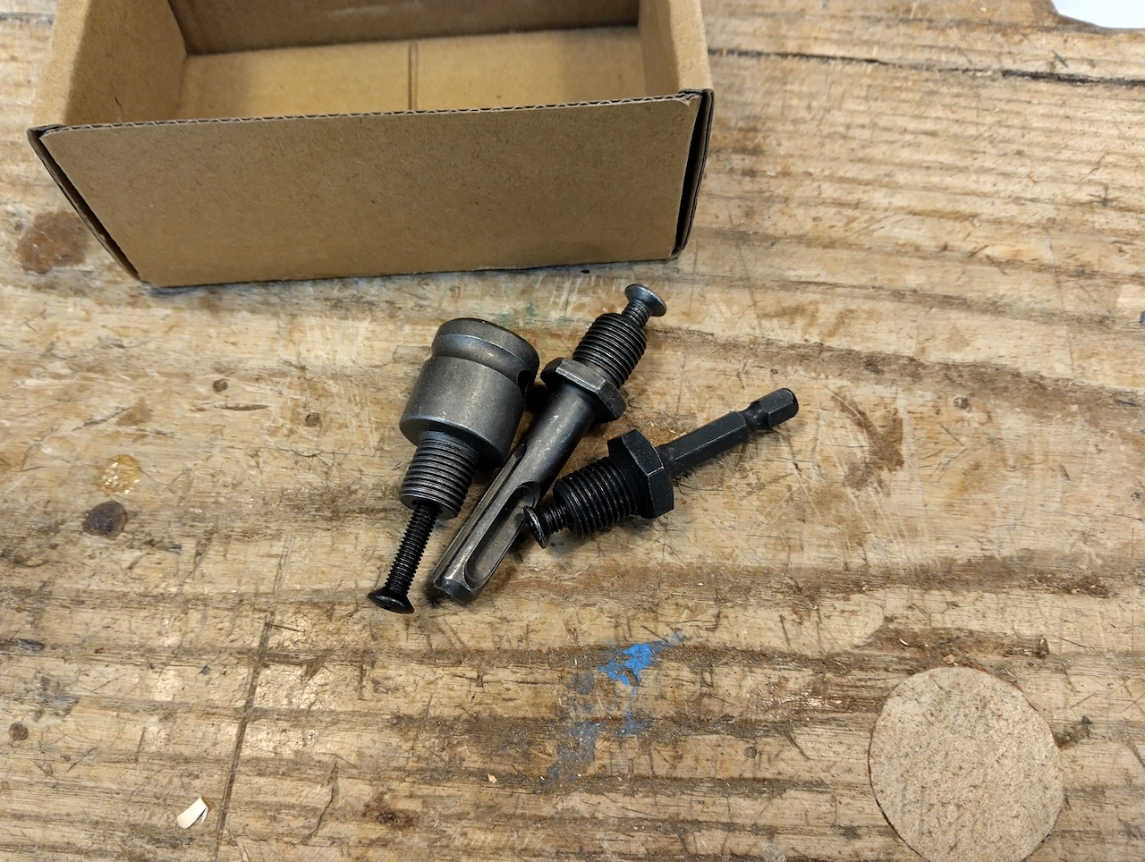 The keyless chuck kit arrived with four adapters. I installed the most massive square one into the chunk.