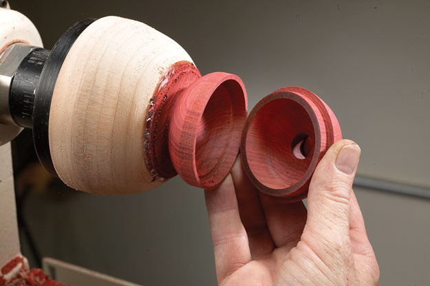 6. Glue the halves together and complete the exterior; sand, finish and part off.