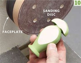 10. Flattening one end on a sanding disc transforms the turning I call the “Leapin’ Lacer” into a frog—especially from a largemouth’s viewpoint.