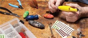11. Attach eyes, hooks, weights and other hardware to complete each lure. Outsmarting fish isn’t always easy, so use both your experience and imagination. And don’t hesitate to change hardware that doesn’t seem to work.