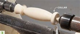 3. Add a hollowed-out collar to create additional sound and surface disturbance. The hollow shape makes the lure chug and pop as it’s pulled across the water. To hollow the collar, cut in with a skew chisel, long point down.