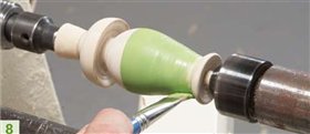 9. Turn down the waste material at both ends, after the paint has dried. Then part off. This step shortens the time it takes to produce finished surfaces on the ends.