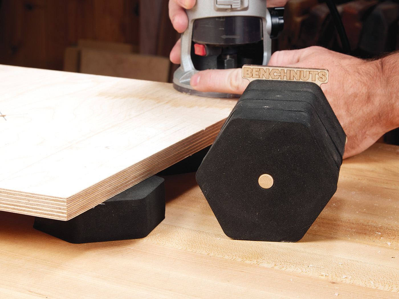 I’m a huge fan of bench stand-offs. I use them constantly—for sanding, routing, finishing, and just about any task that requires keeping a workpiece off the bench. So when I was chatting with the crew from Carbon Method at our Woodworking in America event, they told me about their new product, BenchNuts. I figured they were simply Carbon Method’s take on the standard shop staple. Turns out, I was wrong—way wrong. These things are fantastic.