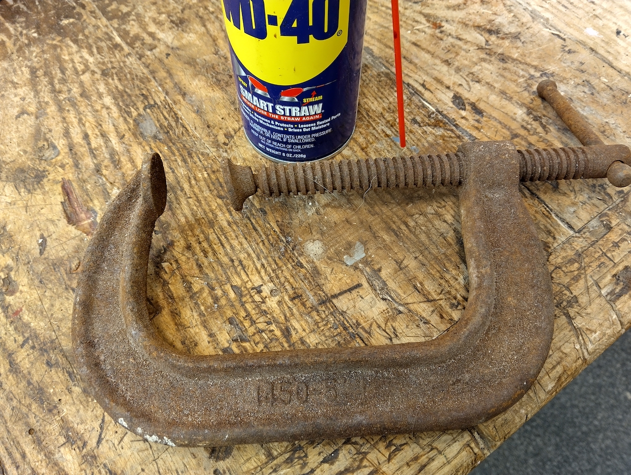 Back in the shop, I used the opportunity to teach my students an important lesson — that tools deserve a second life, and that restoration is often more rewarding than replacement. We talked about metal, oxidation, and the ways to fight rust. Together, we brushed off the flaky surface rust with sandpaper and steel brushes, then applied WD-40. Two of the clamps loosened right up. But the third one was stubborn.