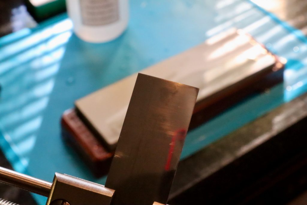 I began lapping the back on a 600 grit diamond stone, then a 1200 stone, and finally on a 5000 grit Japanese water stone.