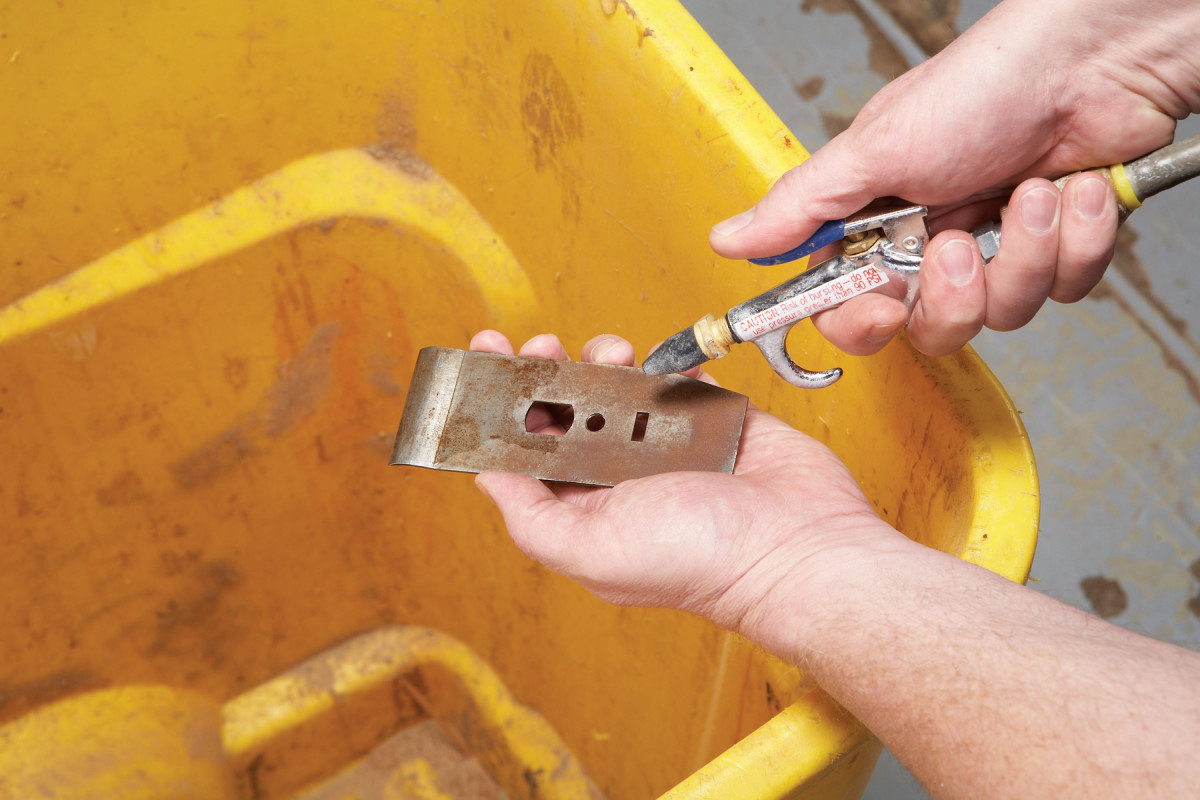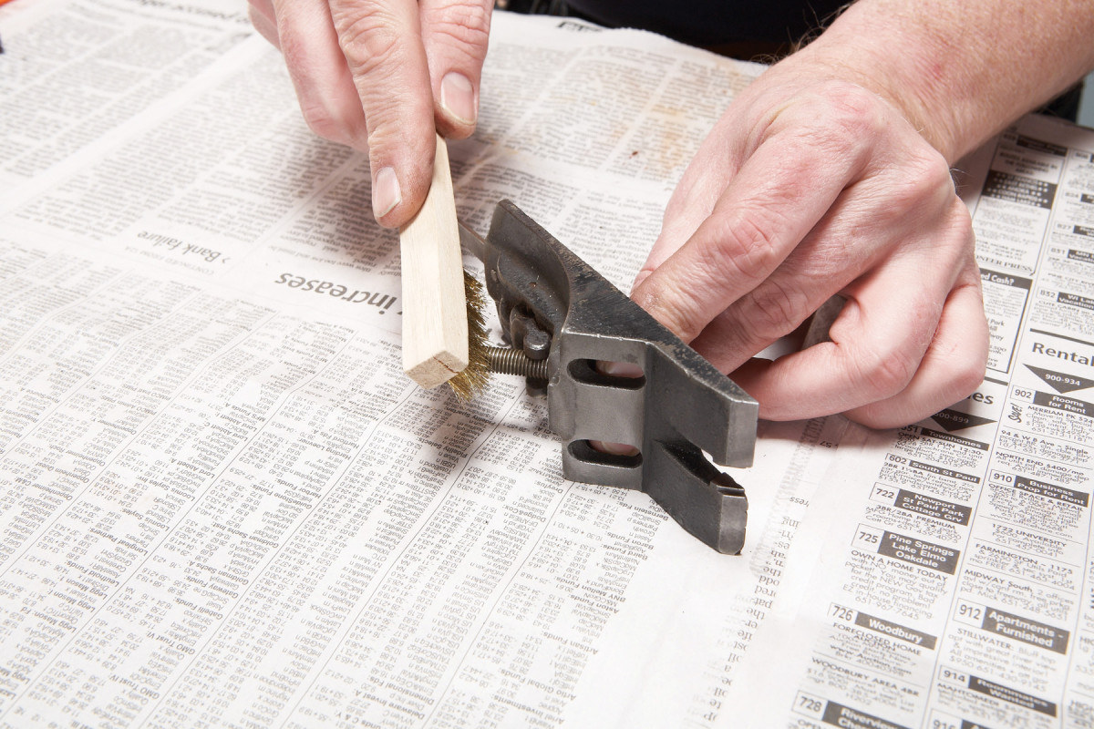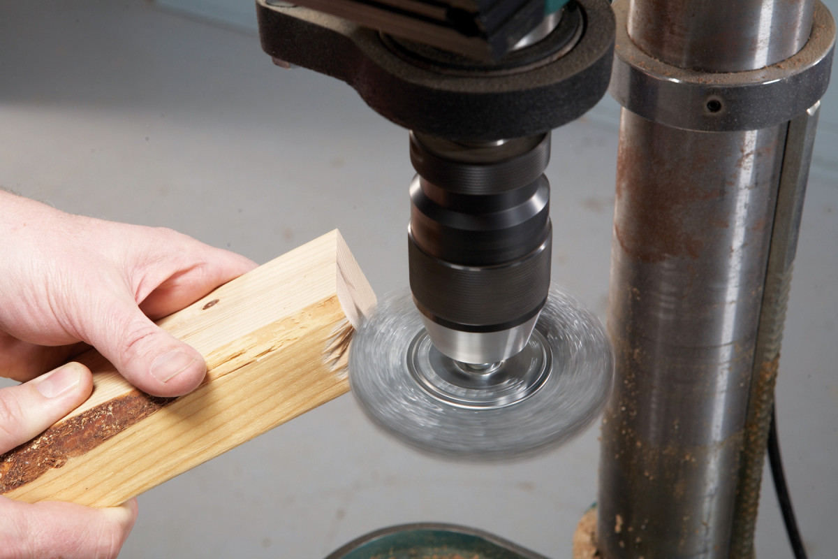 11. TIP: If your wire wheel becomes contaminated with oil or dirt, run it against the corner of a 2×4. This transfers the oil from the wheel to the wood.