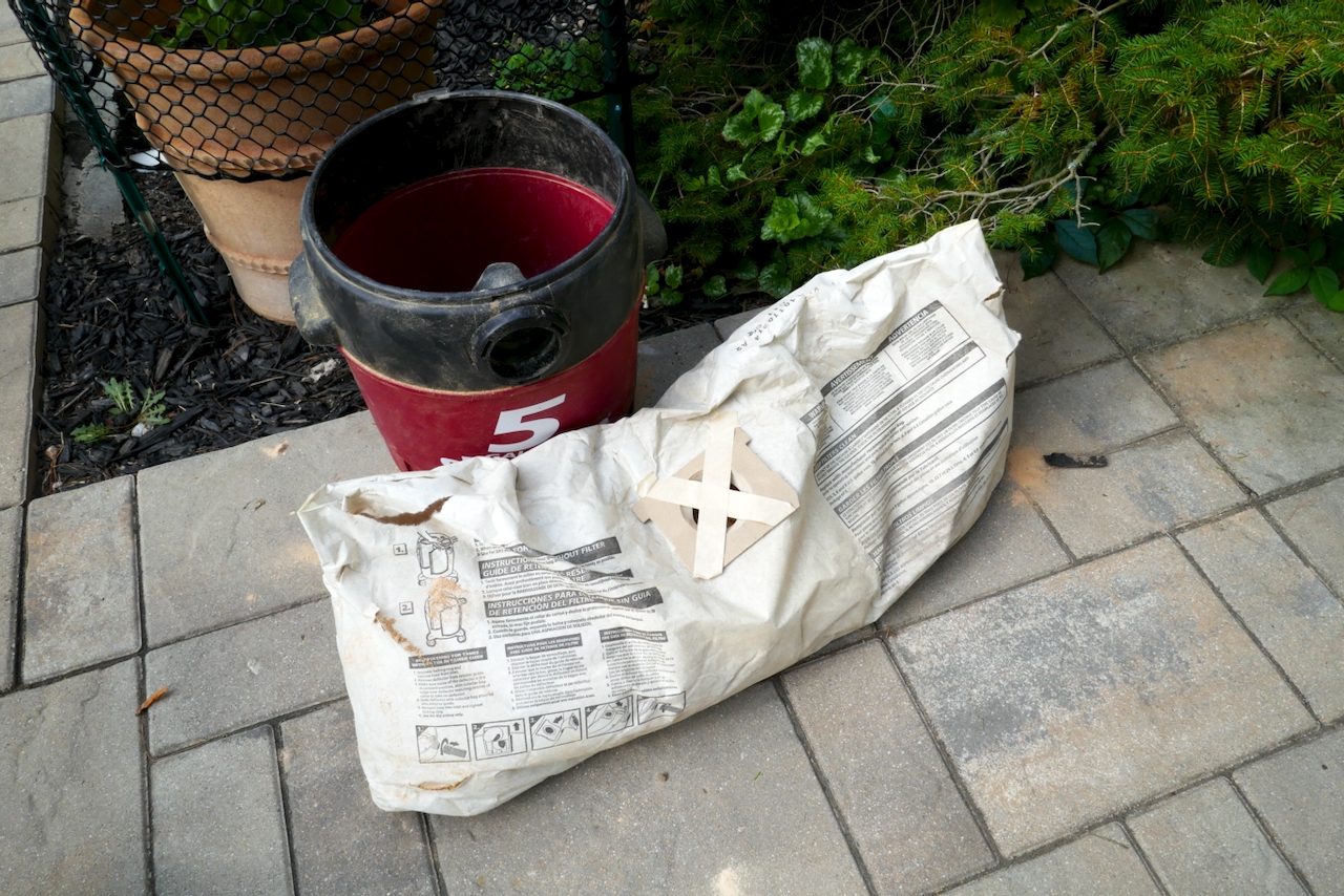 The new bag is inside the Shop-Vac bucket.
