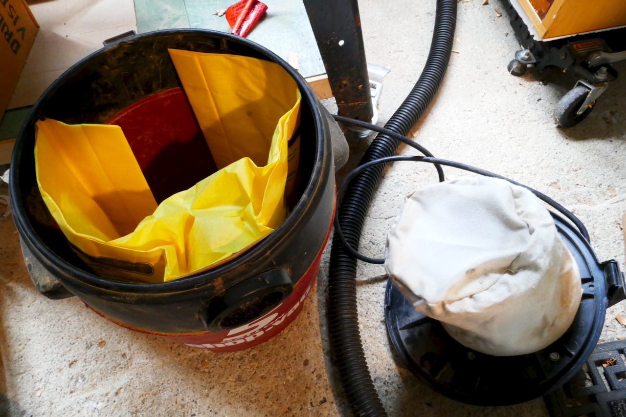 And here’s one more tip: if you’re using a shop vac, don’t just rely on the bucket and a basic filter. Instead, set up a two-tier system with a high-quality HEPA filter (availible for most models) and disposable paper dust bags. This combination captures fine particles far more effectively, keeps your air cleaner, and makes emptying the vac much easier. Just pull out the full bag, toss it, and replace it with a new one—no clouds of dust rising back into the shop.
