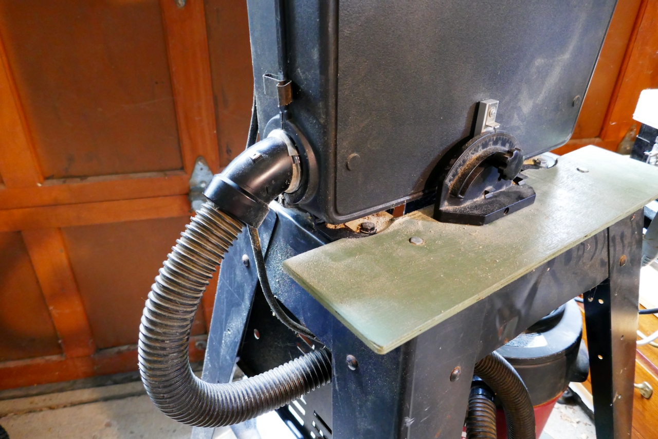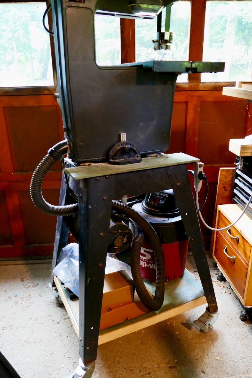 The saw itself was a gift from a neighbor, and when I installed it in my shop I built a shelf beneath it to house a compact shop vac. I connected the vac to the saw’s dust port using an ABS bracket from Home Depot. Now, whenever I fire up the bandsaw, I switch on the vac, and the difference is clear: less dust on the floor, less dust in the air, and a cleaner workspace overall.
