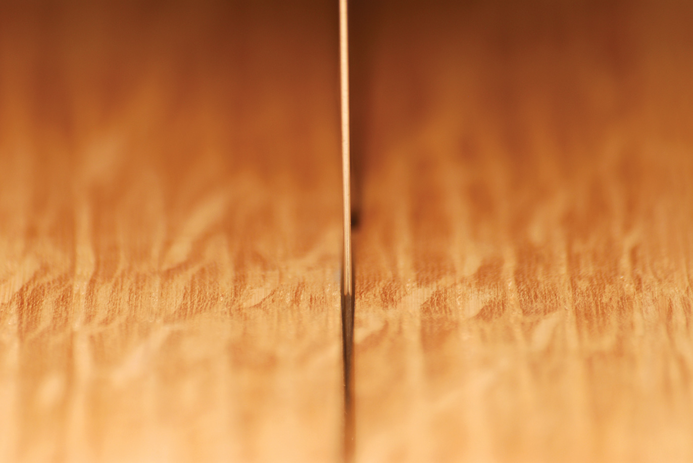 It won’t butcher your work. The band sawn finish from the meat & fish blade is good enough for gluing (shown is Swiss steamed pear veneer).