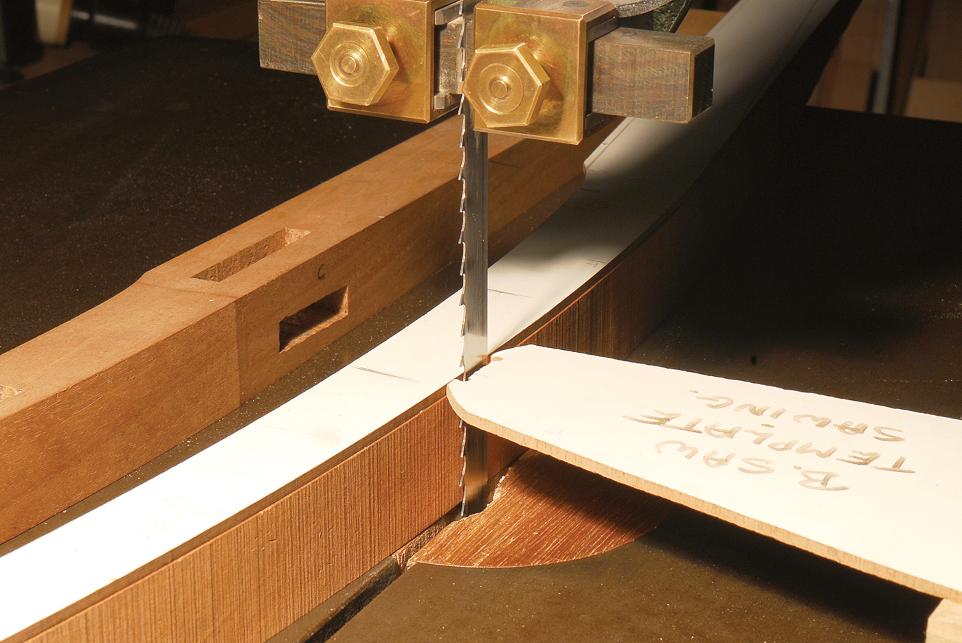 Laminations for curved work that are cut from solid wood are very similar to veneers. It is extremely wasteful and potentially dangerous to cut these on a table saw with its wide kerf. We are turning more wood to dust than we are keeping.