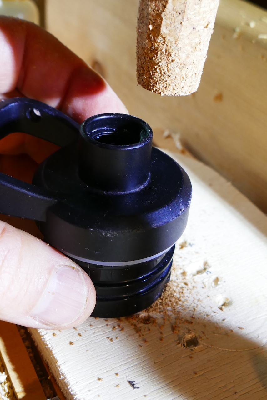 When my son lost his water bottle plug, I decided to make a makeshift one for him using a repurposed wine bottle cork. The chuck proved to be just the right tool for the job, allowing me to turn it to the correct size.