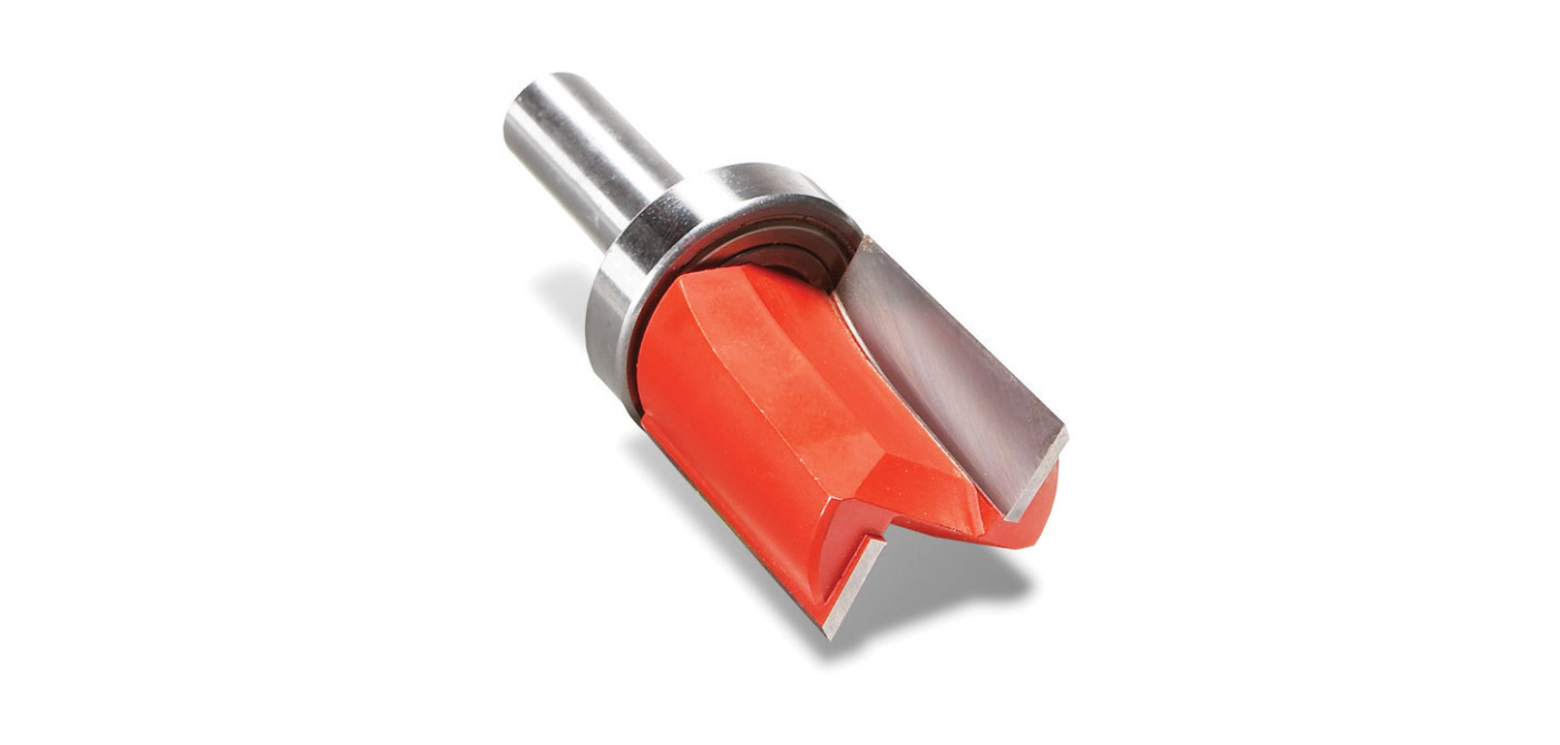 You can use a standard 1/2-in. flush-trim bit for this technique, but that requires placing the guide piece under the top, which can be a hassle. A pattern bit makes setup much easier. You’ll get the best results by using a pattern bit that’s at least 1-in. dia. It makes a smoother cut in end grain than a bit with a smaller diameter.