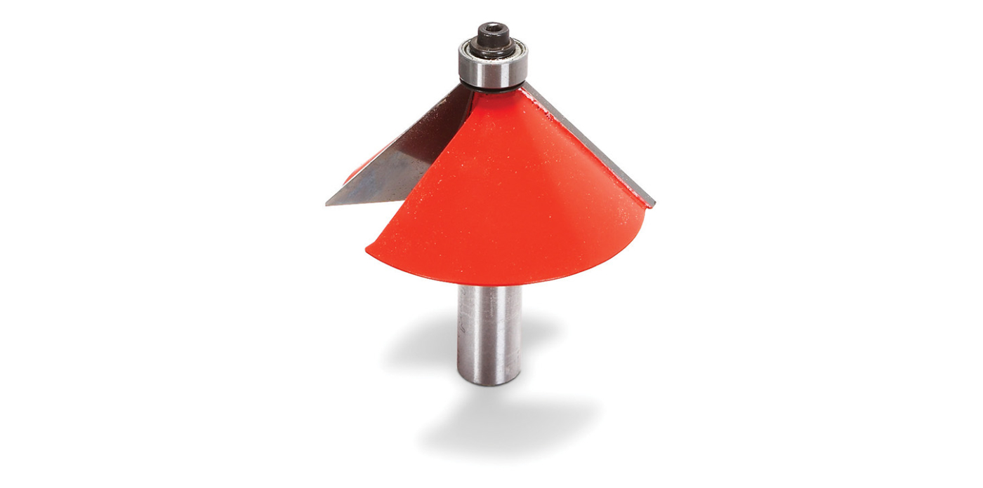 Many contractor’s-type saws don’t do a very good job cutting miters when the blade is tipped over to 45 degrees. The blade shifts out of alignment just enough to produce a burnt or out-of-square edge. If you’ve experienced those problems, try using a chamfer bit, which always cuts a precise 45-degree angle. Chamfer bits come in a variety of sizes. Here are a few tips that will improve your results:
