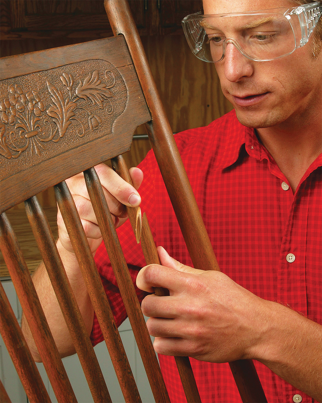 A broken spindle or chair rung can be removed well enough. But how do you get the repaired or new part back in without major disassembly? The answer is a scarf joint: a long, tapered cut that provides plenty of surface area for a strong area joint. A scarf joint is less visible than a simple cross cut.