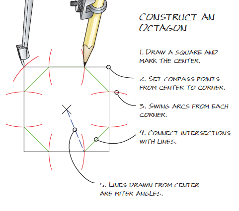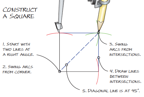 Many layout problems that seem to call for math can be quickly solved with a compass and a straightedge. Numbers can confuse and complicate the situation. What you need to know is how to make things fit –