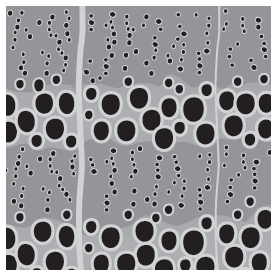 All hardwoods have vessels (little pipelines) that are used in sap production. The size and distribution of these vessels vary among species; some are visible to the naked eye. When the vessels are cut across the end grain, they’re often referred to as pores, thus hardwoods are known as “porous woods” (see below for further classification). The size, number and distribution of the vessels affect the appearance and uniformity of hardness in a particular wood. Softwoods, which don’t have pores, are known as “non-porous woods.”