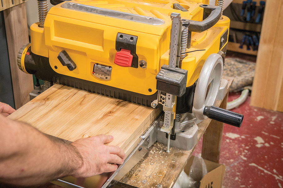 3) Thickness the stock. Run the panel through your thickness planer, flattest side down, until the top is flat. Then flip the board over and flatten the other side as well. The exact overall thickness is less important than making sure the entire panel is of uniform thickness.