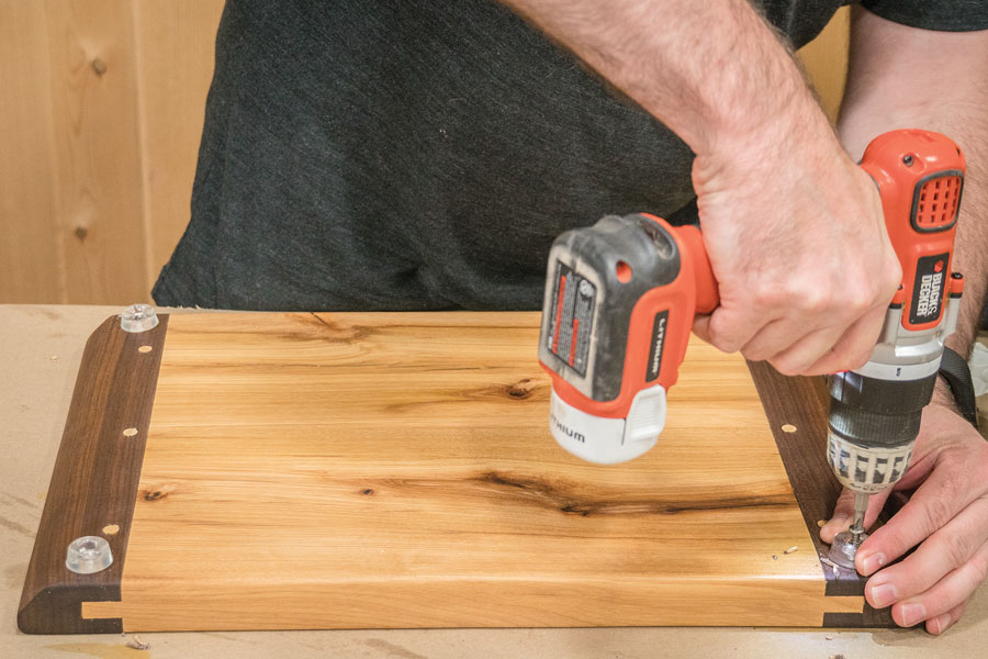 19) Give it a lift. Screwing rubber feet onto the bottom of the cutting board at all four corners not only raises the cutting board up off your counter, it also lends a little grip so it is less likely to move when in use.