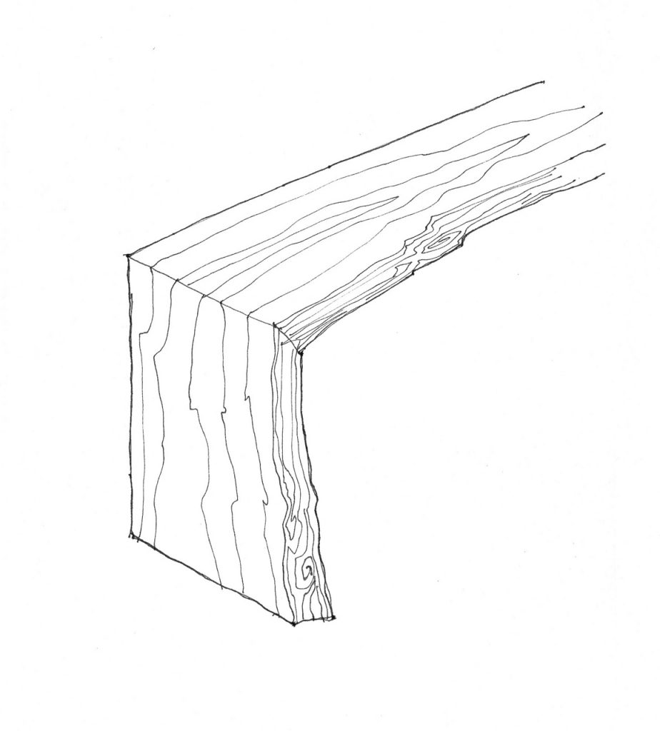 While one end of the table would receive this structural/esthetic treatment, I was wondering what we should do with the other end. After a few scribbles in my sketch book I decided to turn one leg on the lathe and connect it to the top. In most cases I would have connected the leg in a right angle to the top; this is probably our natural inclination, as most furniture parts are connected at 90 degrees. But this doesn’t mean that it has to always be the case.
